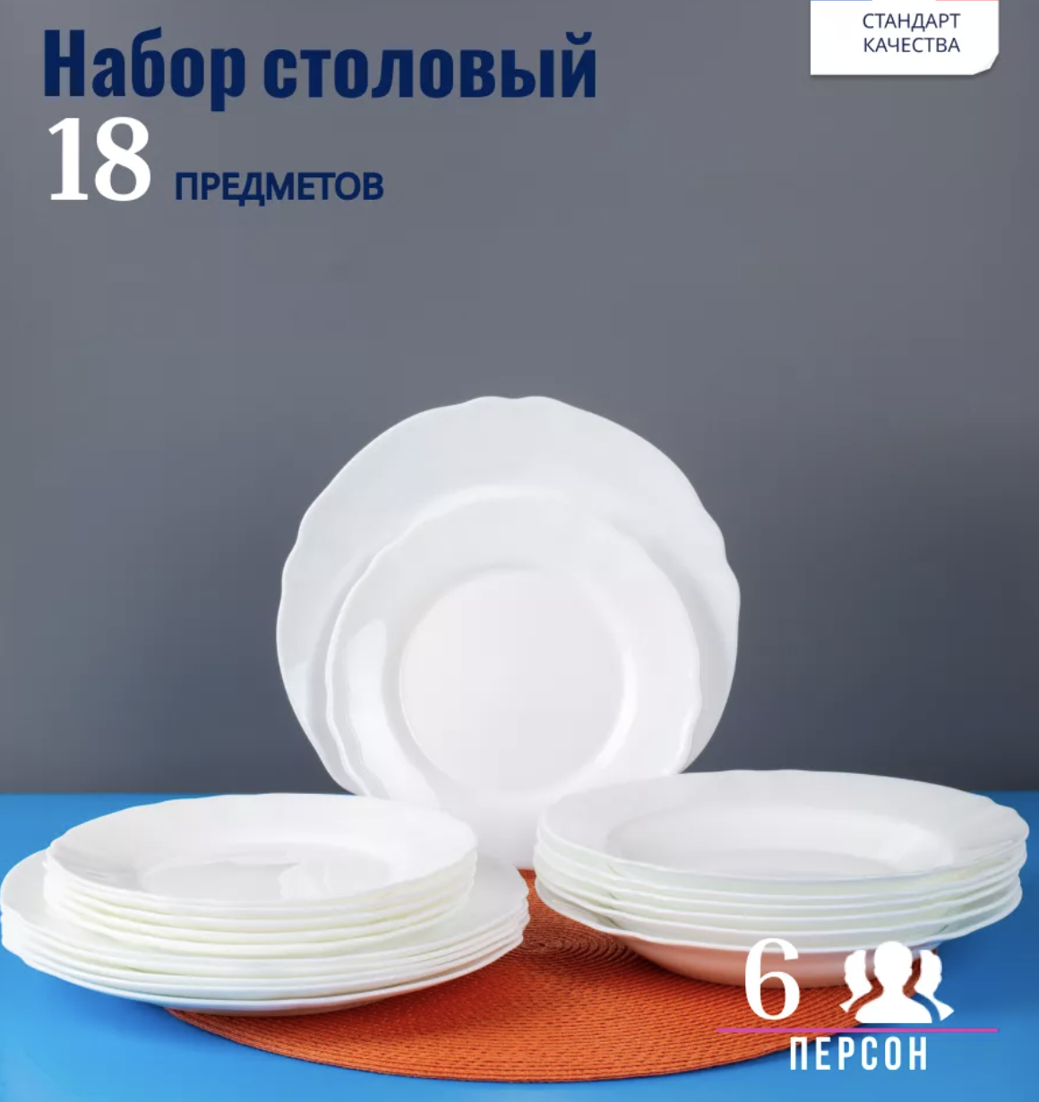 БЕЛЫЙ СТОЛОВЫЙ СЕРВИЗ 18 ПРЕДМЕТОВ