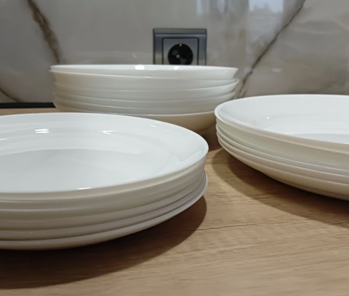Столовый сервиз на 6 персон из 18 предметов — это безупречное сочетание французского дизайна и закалённого стекла. Белоснежные тарелки с изящными волнистыми краями украсят любой стол — от повседневного до праздничного.