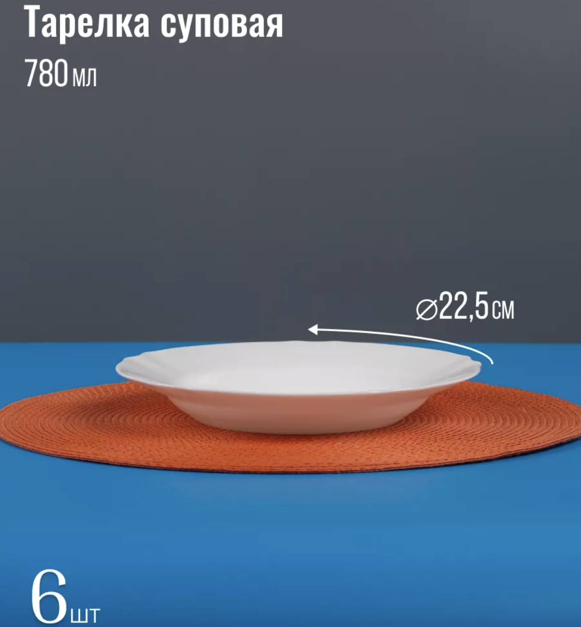 Столовый сервиз на 6 персон из 18 предметов — это безупречное сочетание французского дизайна и закалённого стекла. Белоснежные тарелки с изящными волнистыми краями украсят любой стол — от повседневного до праздничного.